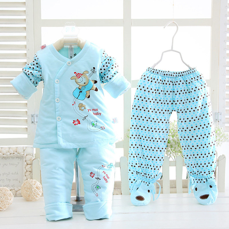 新生儿纯棉薄棉衣三件套男童女童全棉加棉春秋薄棉衣套装包脚裤子热门设计联盟服务商