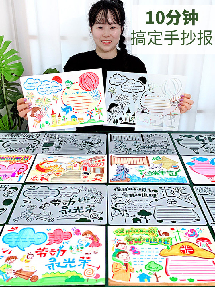重阳节手抄报模板儿童国庆节画画模版镂空a4手绘图案a3半成品套装热门设计联盟服务商